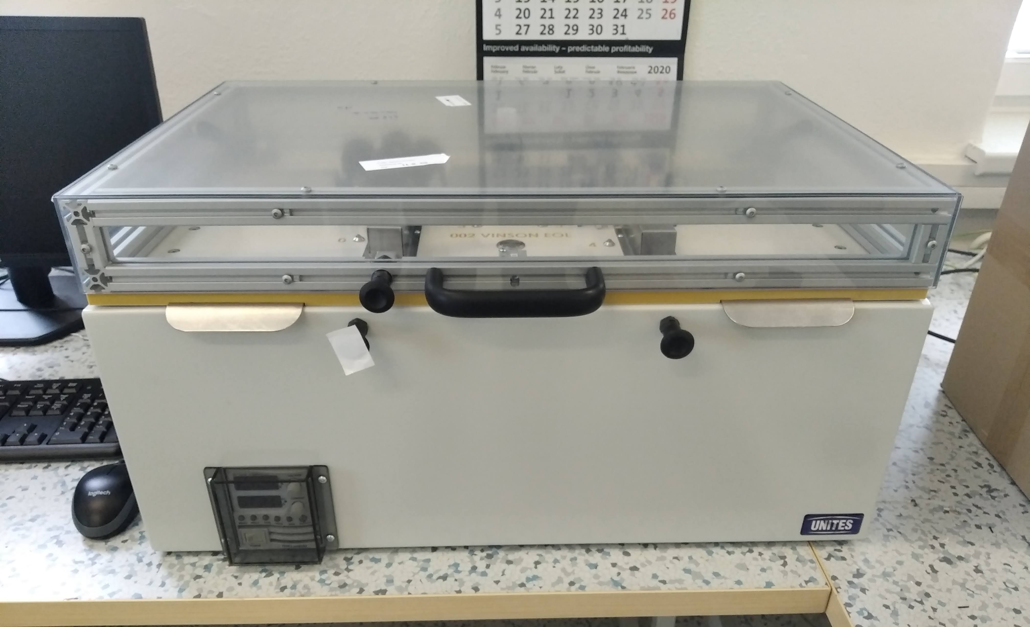 The aim of the test in the climatic chamber is to verify the correct functionality of the product in the temperature range from -20 ° C to + 80 ° C. Testing takes place at defined points of the temperature profile, usually after the product temperature has stabilized. The temperature profile lasts on the order of hours and during it the supply voltage changes. This tests the product for the limit conditions in which it must operate. To ensure the efficiency of the testing process, we test 32 pieces at a time.
