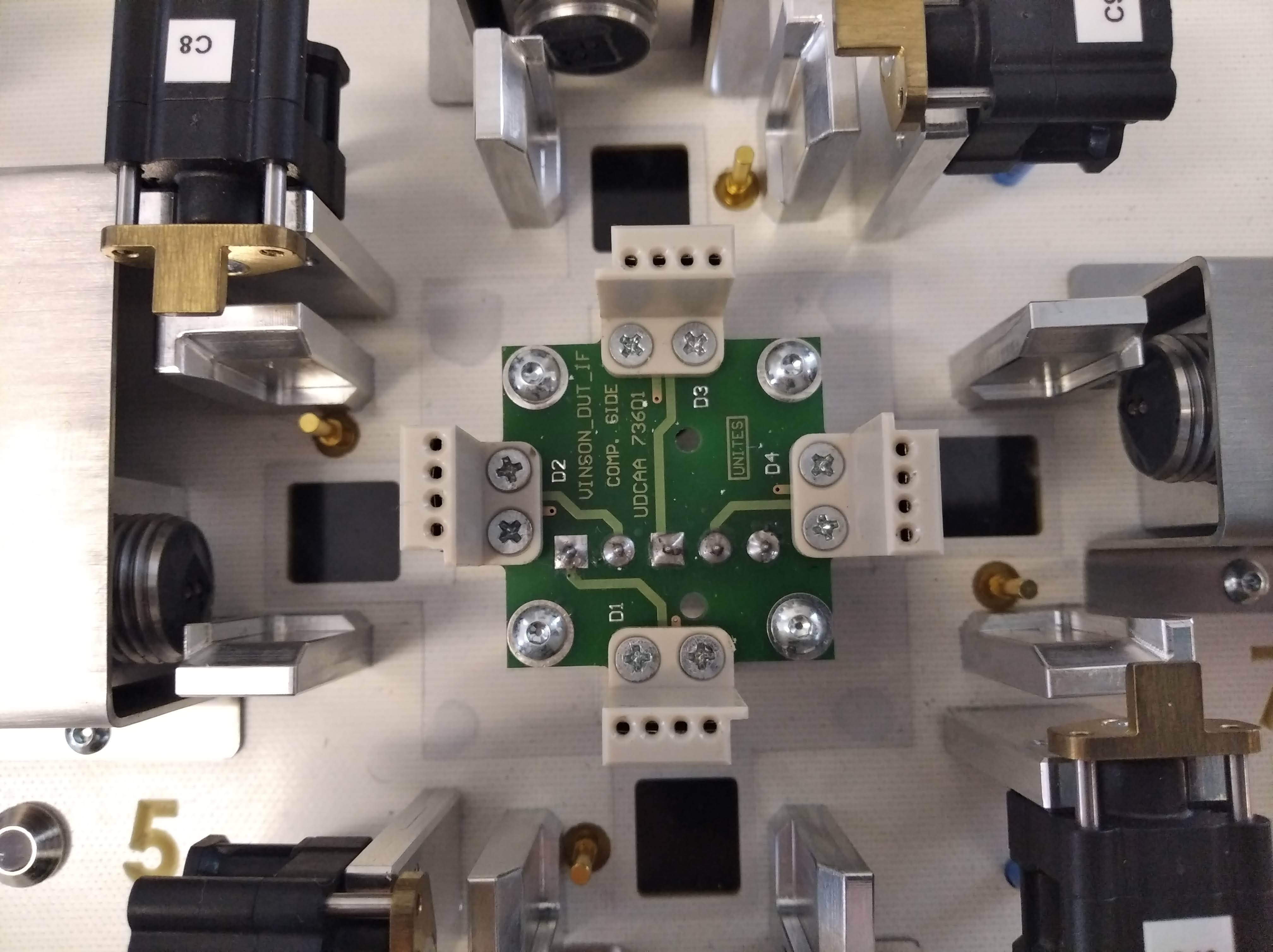 The aim is to test 100% of product production in order to verify their basic functionality. The test must be very fast so as not to slow down the production process. To ensure a sufficient testing speed, 8 products are always measured simultaneously.